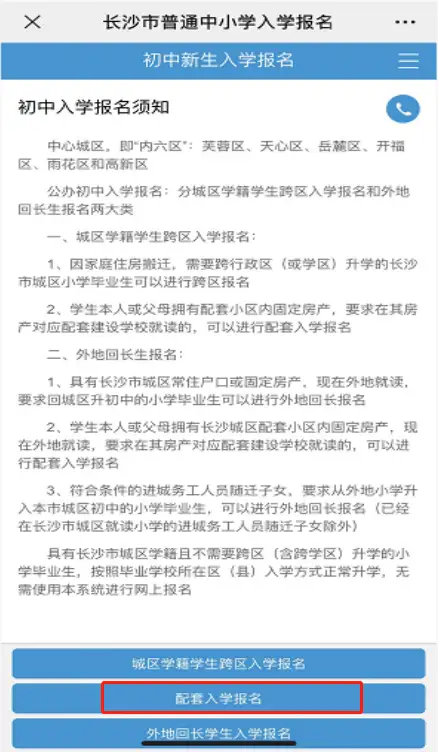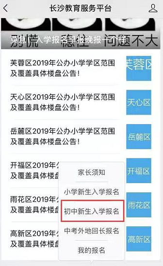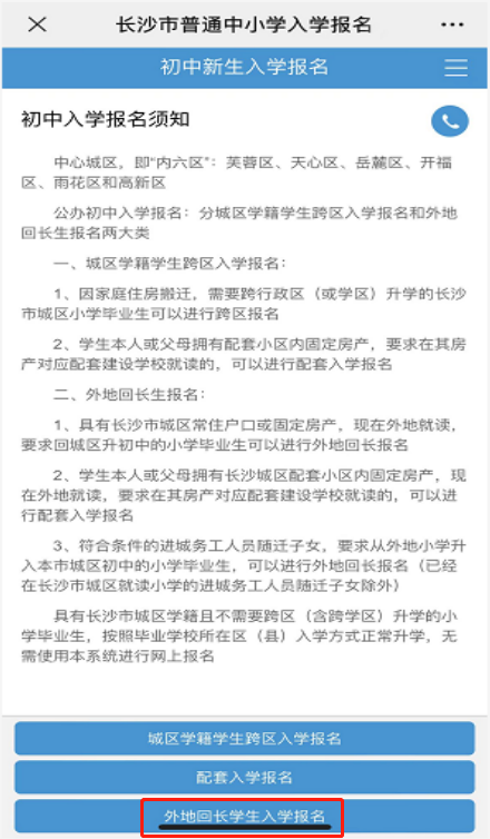 3.了解初中入学报名须知,选择“外地回长学生入学报名”