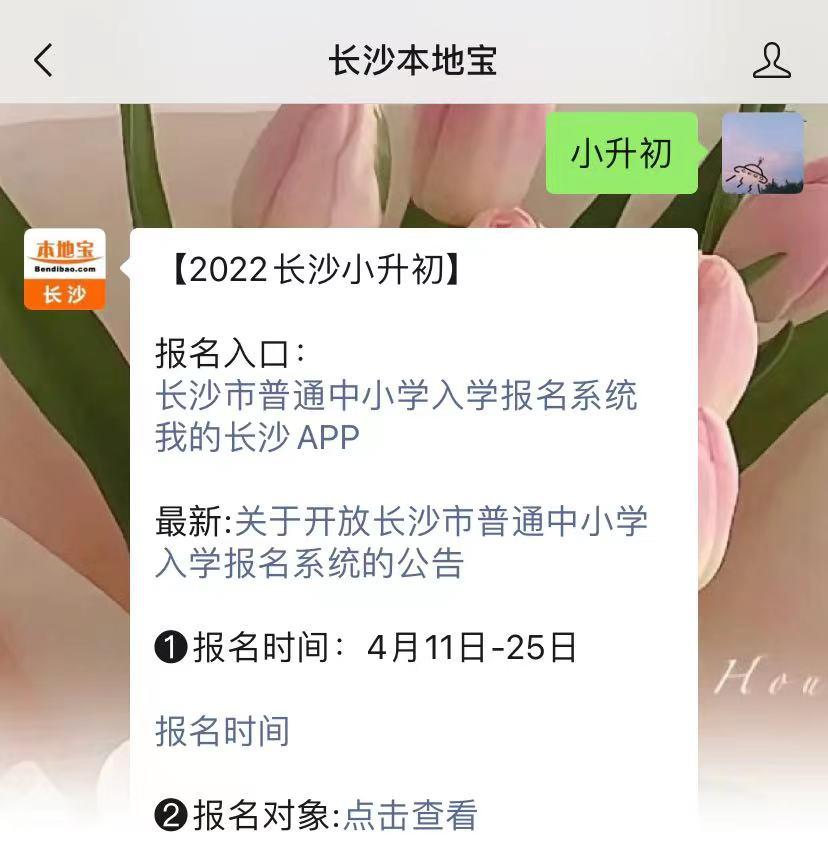 温馨提示:微信搜索公众号长沙本地宝,关注后对话框回复【小升初】可获2022长沙小升初最新消息,查看报名时间、入口、对象、报名指南等。