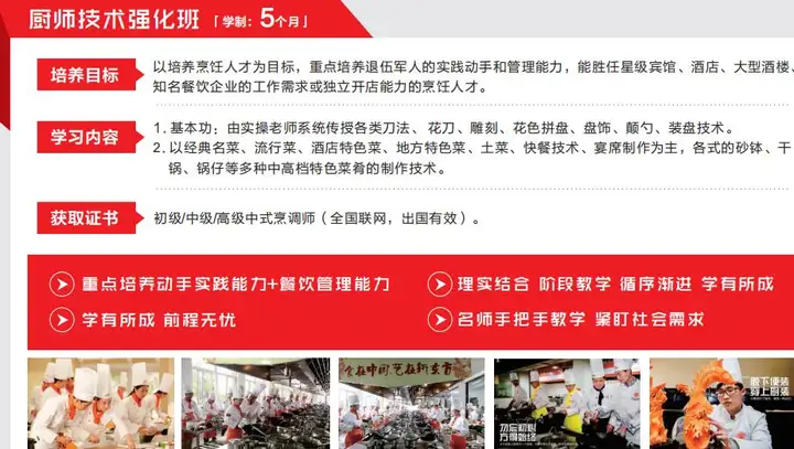 【稳定就业】 技多不压身,趁着当今餐饮业发展如火如荼之势,何不巧借东风给自己的未来加一个成功砝码呢。多一项技能,多一个选择,另外我院拥有完善的就业体系,帮助你毕业即就业,在江西新东方学厨师,月入过万不再是梦想!