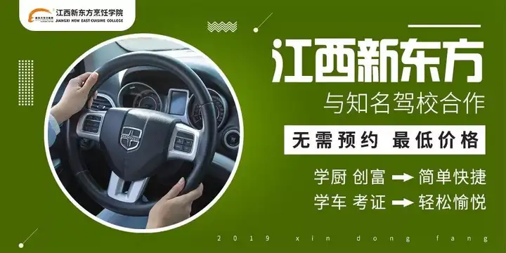 【驾训服务】 江西新东方烹饪学校为退伍军人选取最优质的驾校合作,学厨之余可一站式考取驾照,一份付出,两份收获,免除学员后顾之忧。