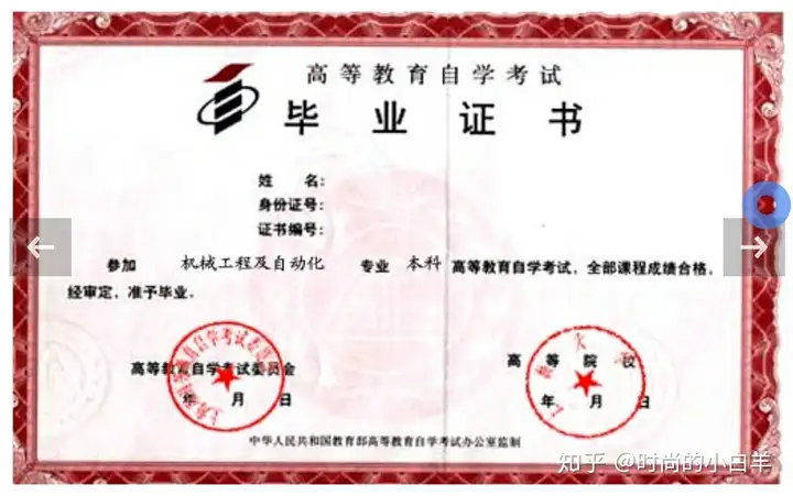 也有专业的,但是很难找,大部分人都是自考本科。可以看到,他中间写的是,高等教育自学考试,下面有两个章,一个是高等教育自学考试委员会的章,还有一个是毕业院校的章。