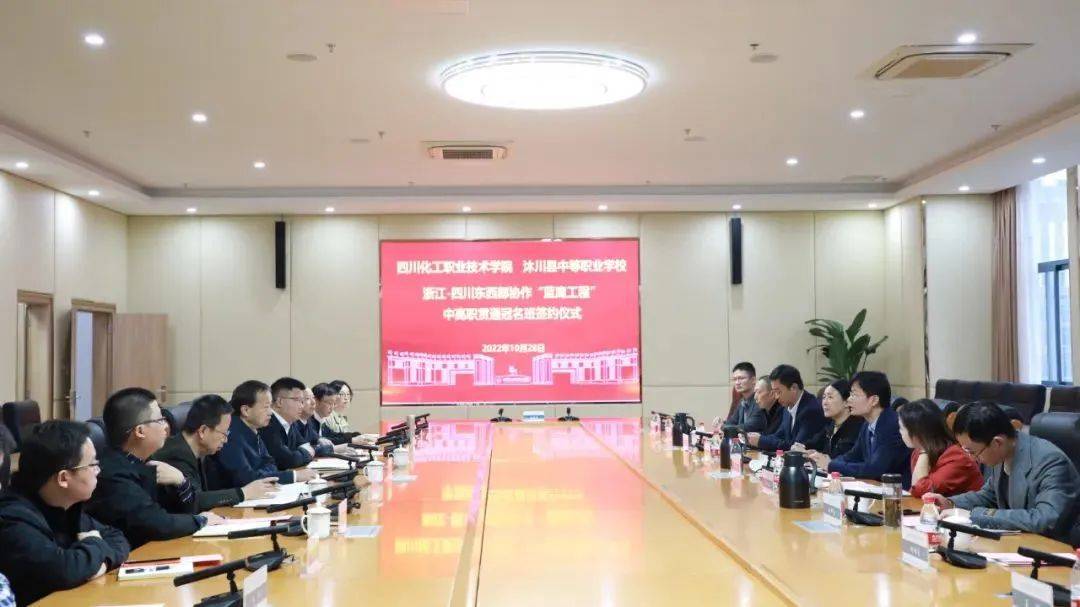 10月28日,四川化工职业技术学校与沐川县中等职业学校举行了浙江-四川东西部协作“蓝鹰工程”中高职贯通冠名班签约仪式。