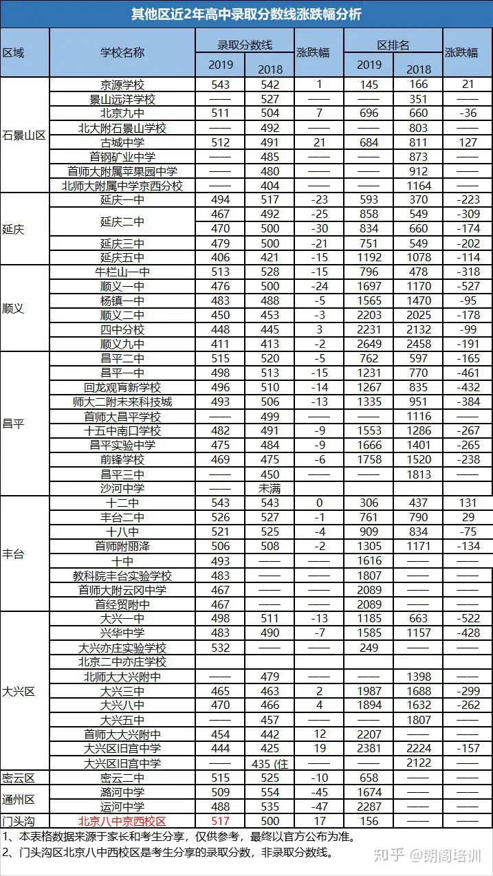 而丰台区十二中分数线未下降,但区排名有所上升,也说明十二中在丰台区受校额到校政策影响较大。