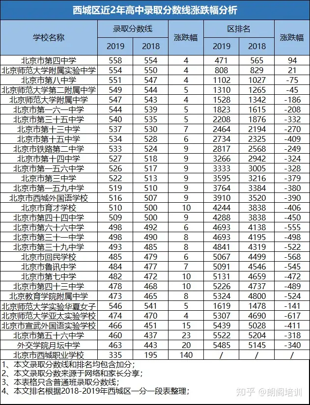 2019年整体录取分数线比2018年都有所增长,区排名除了西城四金刚外,其它学校都有很大幅度的下降。