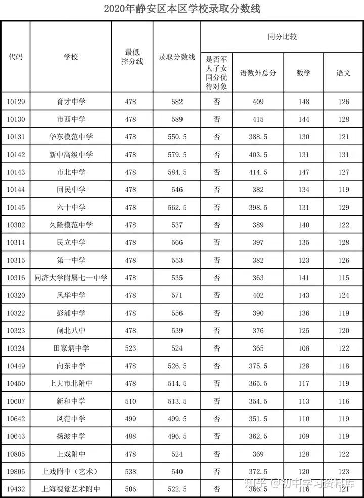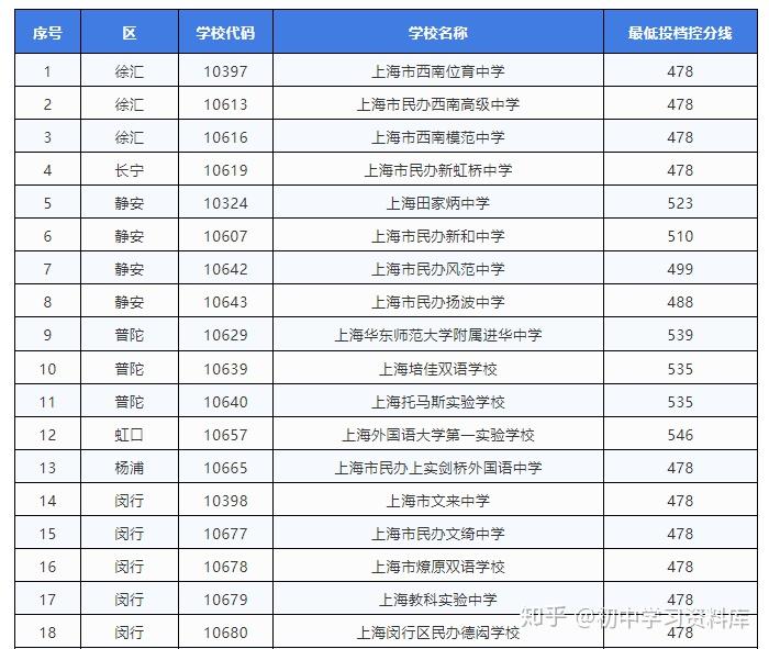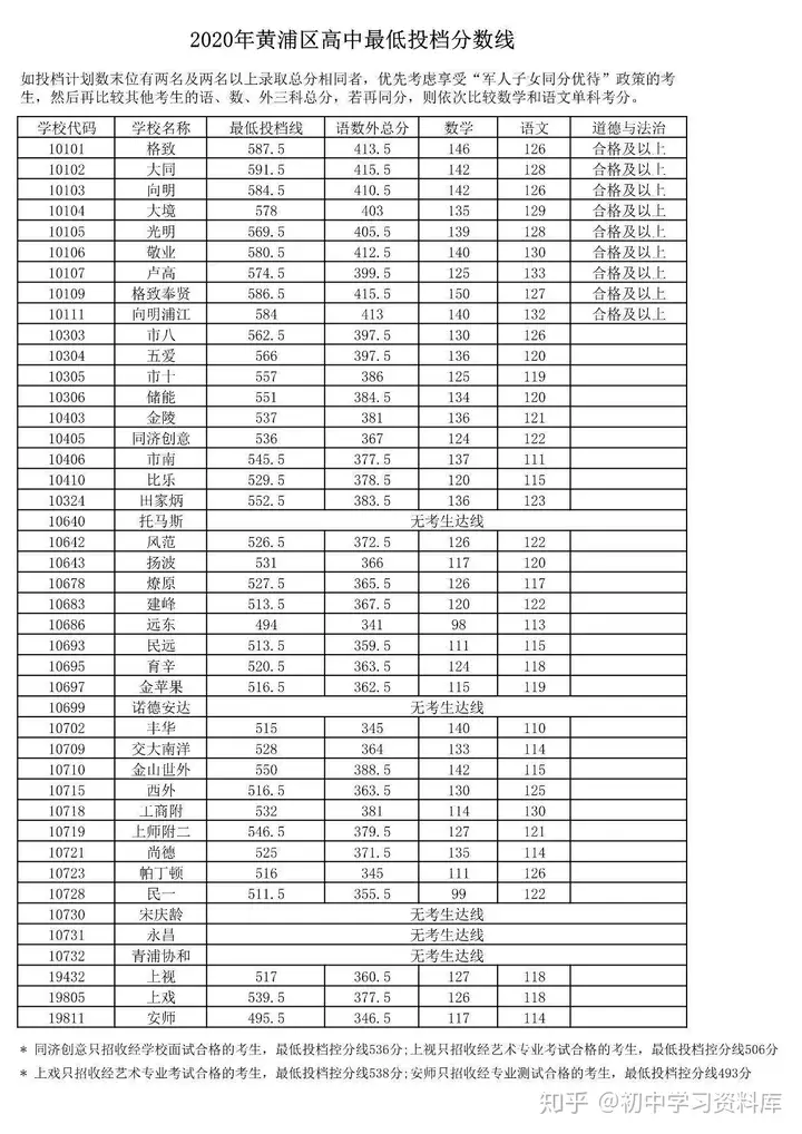 2020年上海市民办高中最低投档控制分数线公布如下: