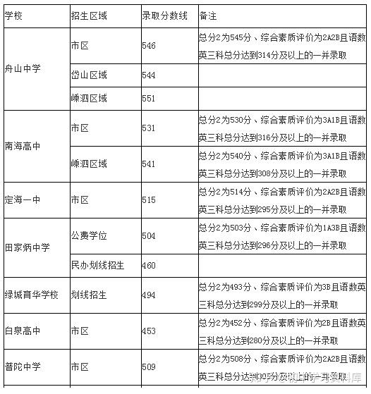 市直普通高中学校常规生(不含直升生、指标生、自主招生)录取最低分数如下: