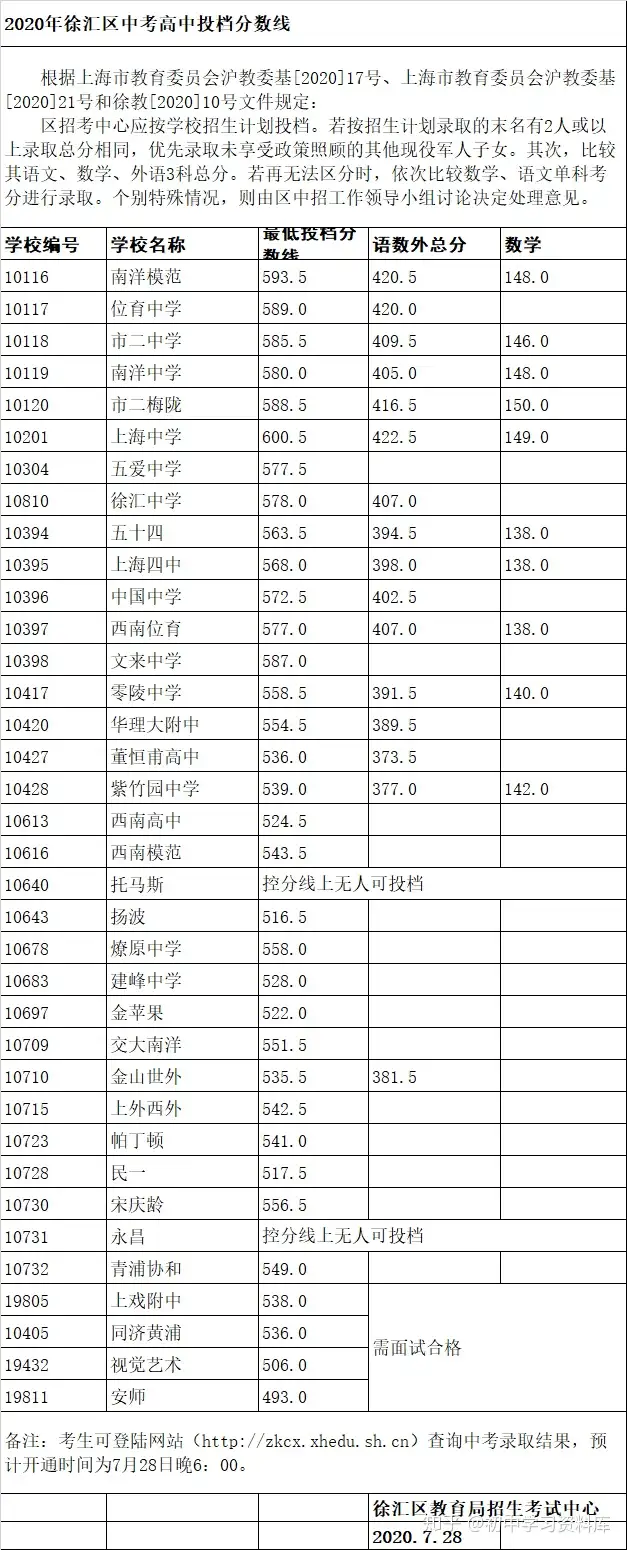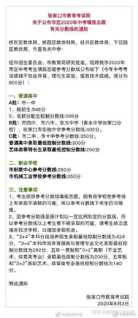 2020年中考阅卷、划线工作已于7月28日全部结束。经市招生委员会研究确定,现将我市2020年中考各类学校招生录取最低控制分数线通知如下: