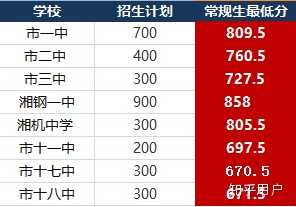 湘潭县、湘乡市、韶山市、湘潭经开区、昭山示范区普通高中学校录取最低分数由主管教育行政部门公布。