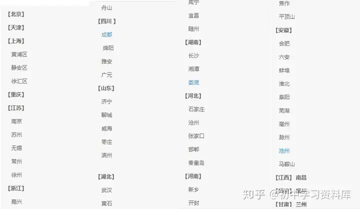 整理的比较多,大家可以直接拉到自己的省市~(从左列到右列的顺序)