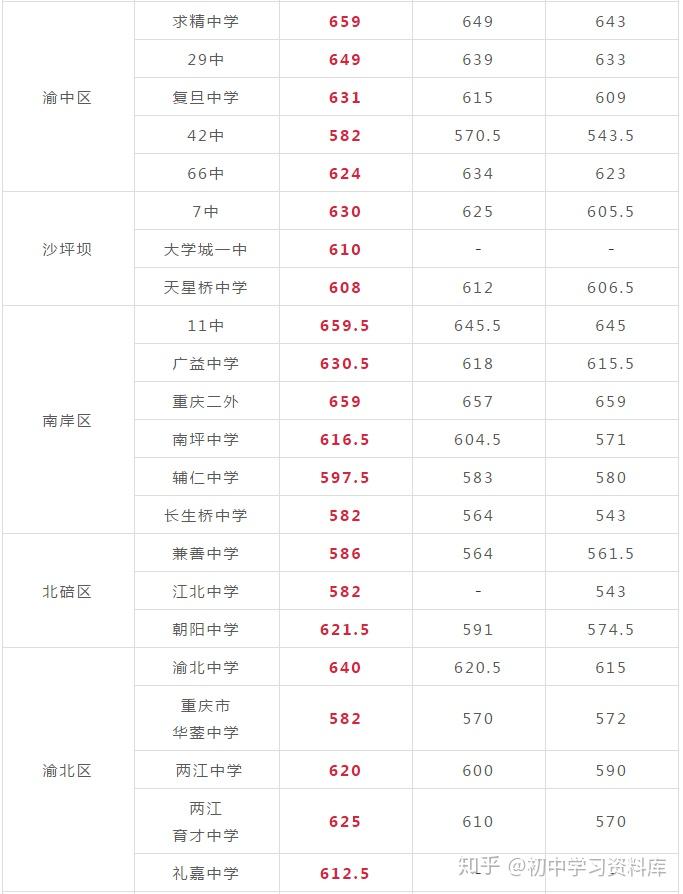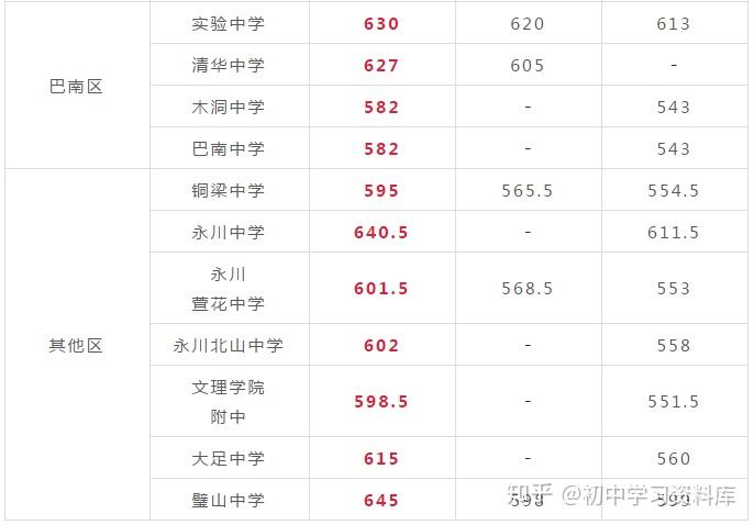 江油市太白中学:603分,绵阳市开元中学:552分,高新区实验中学:565分,绵阳市丰谷中学:550分,绵阳市秀水中学:565分。