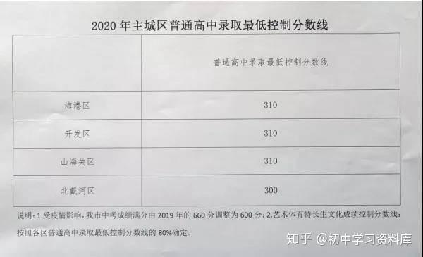秦皇岛最新发布2020年主城区普通高中录取最低控制分数线: