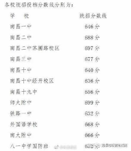 南昌市2020年第一批次省级重点高中投档分数线划定