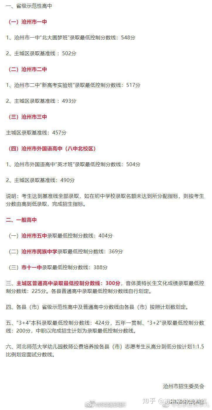 邯郸市最新发布2020年主城区普通高中招生最低控制分数线: