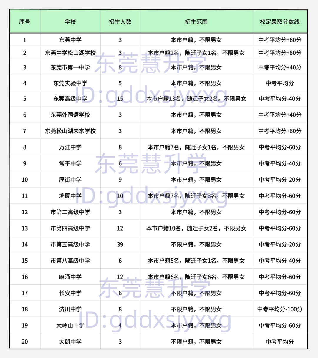 公办学校一般会限户籍,招生计划主要针对户籍生,也有部分公办学校不限户籍,例如:五中、麻涌中学、大朗中学、济川中学等。民办学校特长生是不限户籍的,随迁子女是可以报考的。