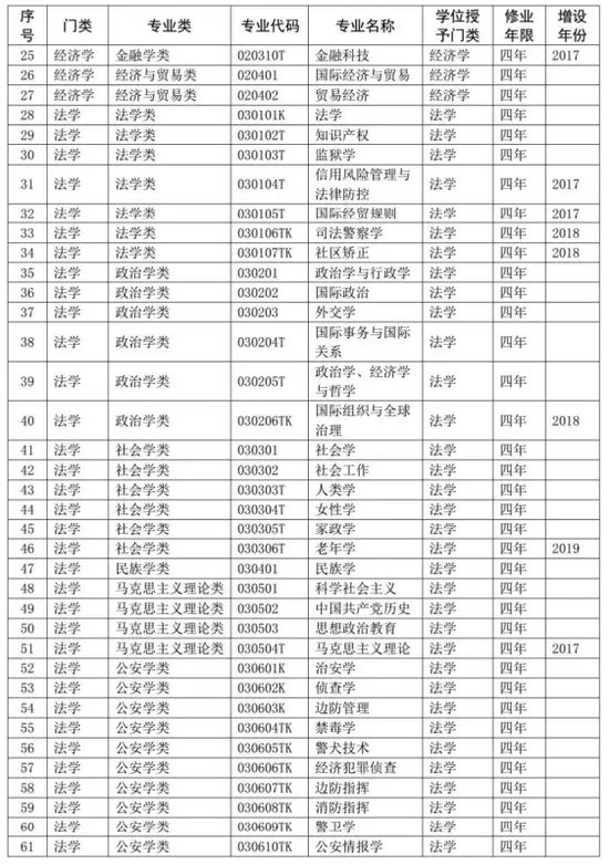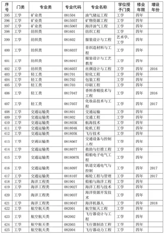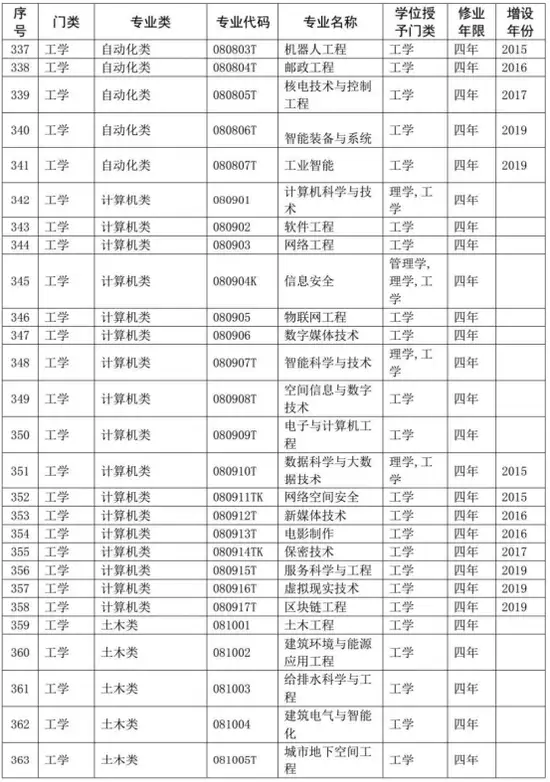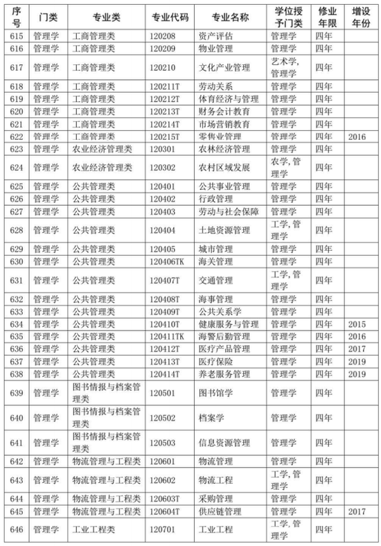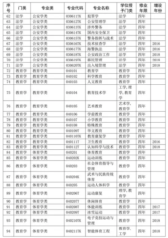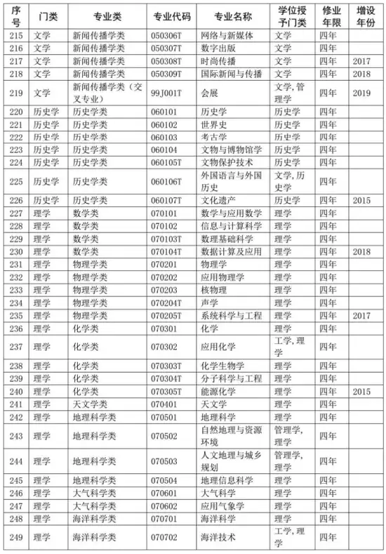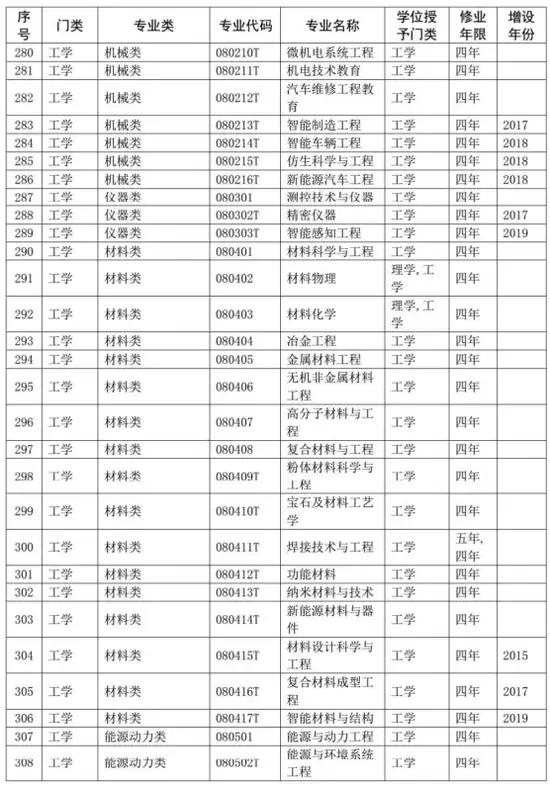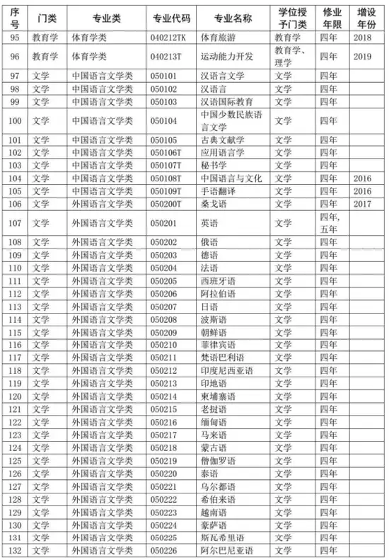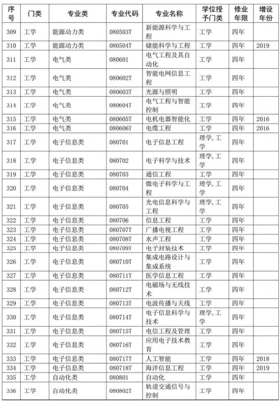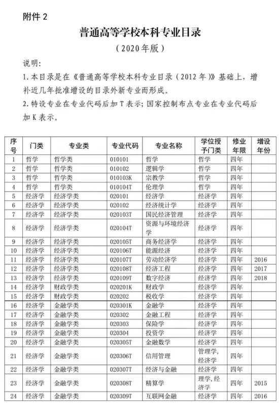 普通高等学校本科专业目录(2020年版)