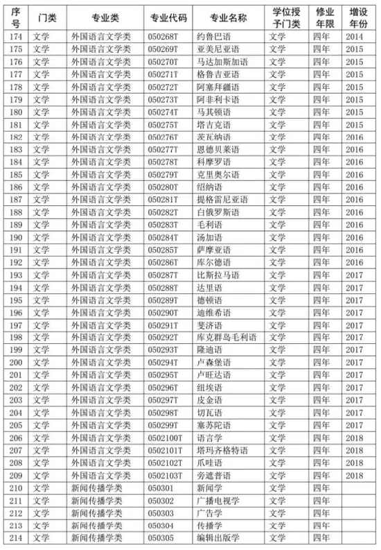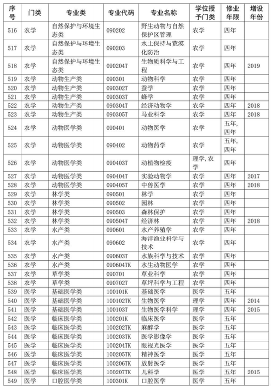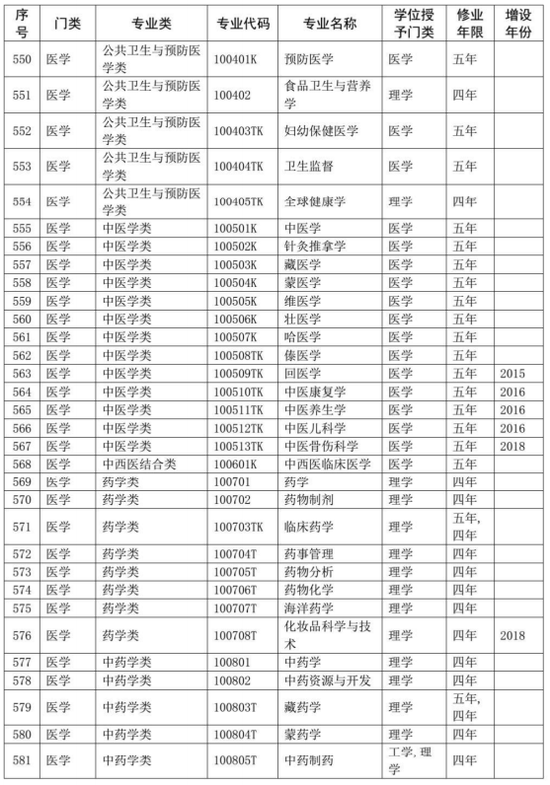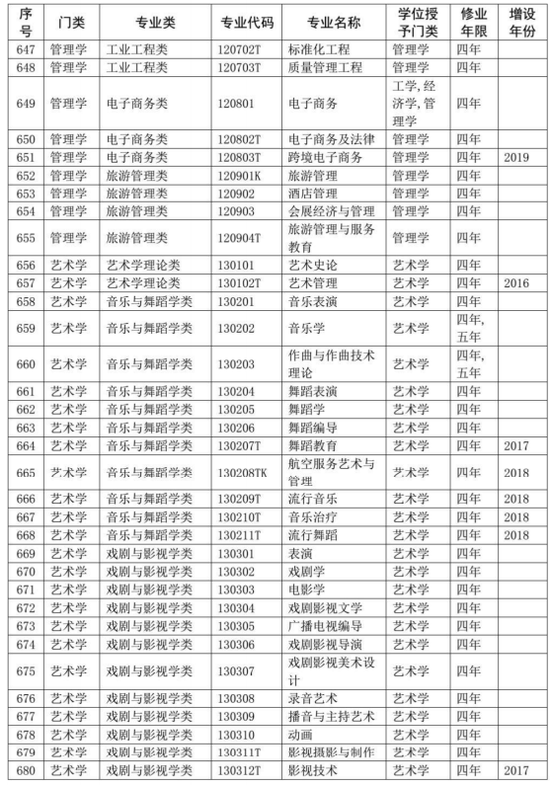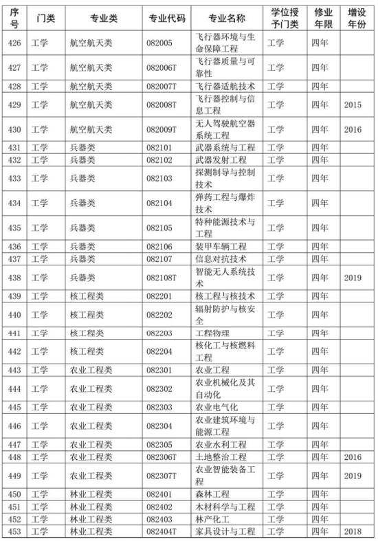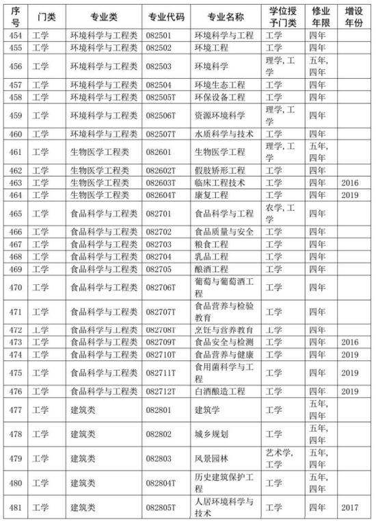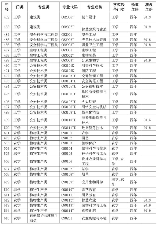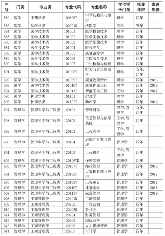 同时,在《普通高等学校本科专业目录(2012年)》基础上,增补了近年来批准增设的目录外新专业,形成了最新的《普通高等学校本科专业目录(2020年版)》,一并予以公布。新版本科专业共703个,详细如下。