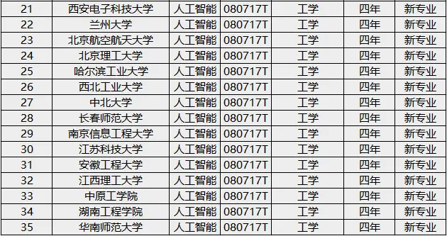 人工智能专业:新增数量35个