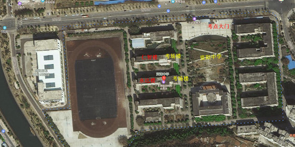 1、从考点正门(只有一个门)进入学校步行至考试教学楼预计步行2~3分钟。