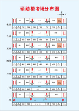 1、从考点正门进入学校左拐步行至考试第六教学楼1分钟左右。