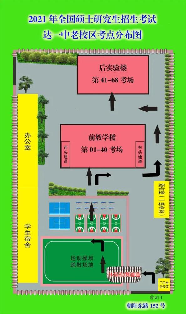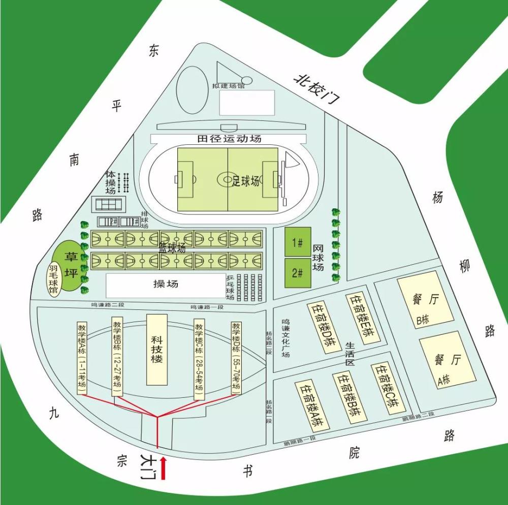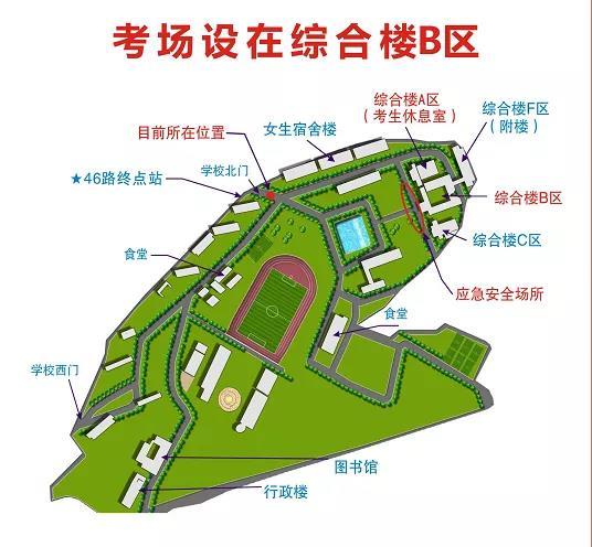 1、考生一律从学校正校门进入考点,进门左转步行100米即到达考场所在的第一教学楼。