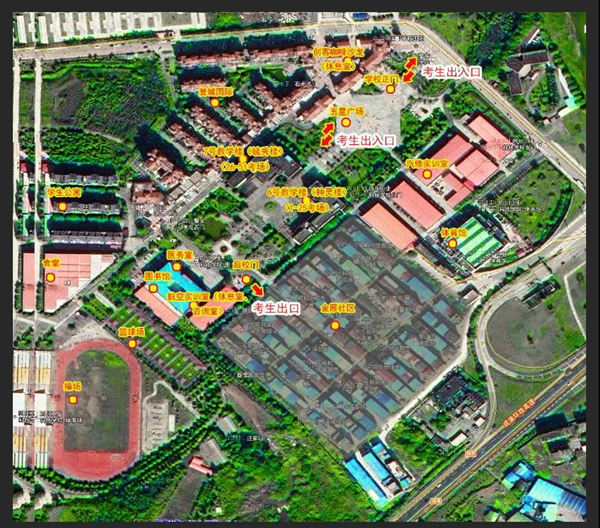 考点从学校南门进入后步行10分钟便可到达考区教学楼,并且没有校内公交之类代步工具。按疫情防控要求,考点只设立南门一个出入口。