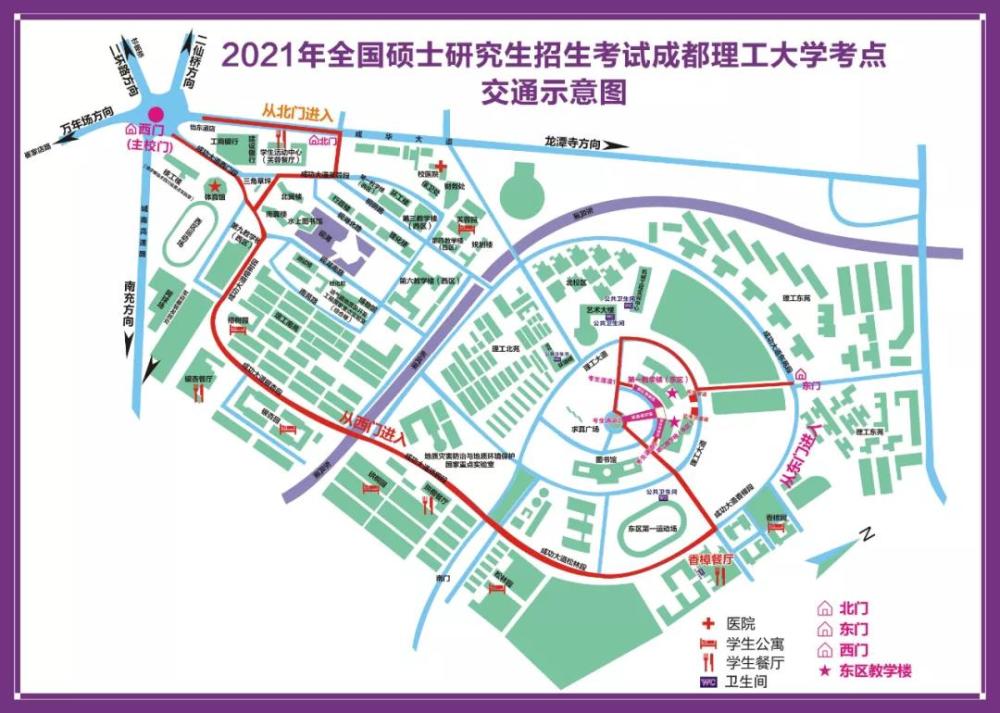 1、考生进校唯一通道西晖门。因成龙大道升级改造,施工单位已对成龙校区南风门外道路进行了施工打围,行人请从成龙校区西晖门(侧门)进出。西晖门步行入教学楼约9分钟。
