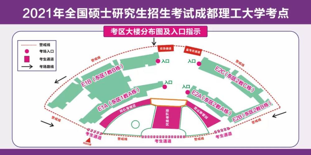 请考生查看《成都市教育考试院报考点(5143)2021年全国硕士研究生招生考试公告(一)》查找考点地址,提前规划好赴考路线与时间,避免因迟到耽误考试。