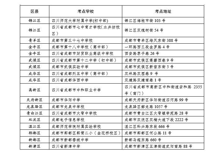 成都市2021年全国硕士研究生招生考试考点及地址