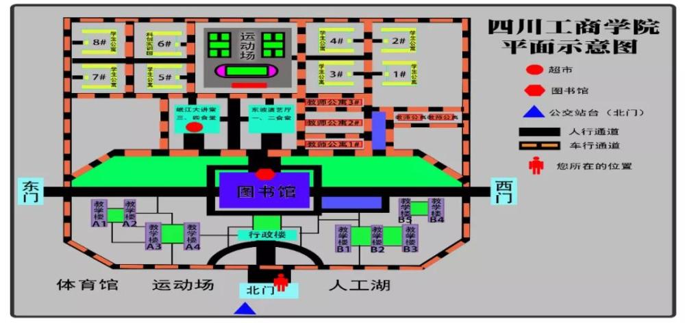 1、可从学校正门(南门)或西门进校,沿途有指示牌指引,南门步行约10分钟,西门约6分钟。