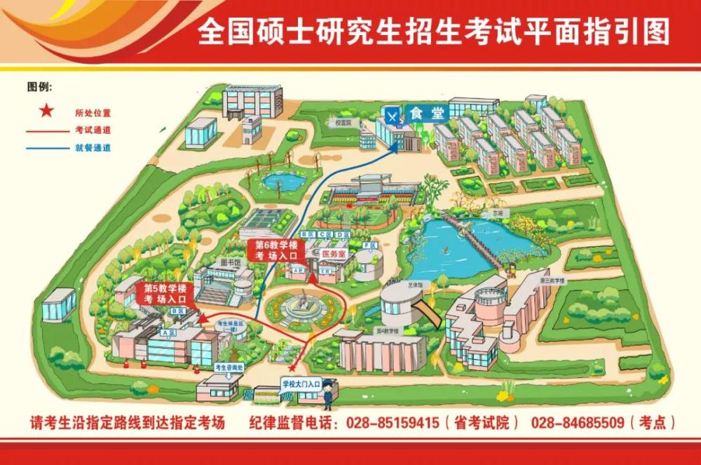 (备注:在此前发布的第一期考点考场方位图及温馨小贴士中,西华大学考点平面示意图未标注教学楼地点,请各位考生以本期为准。