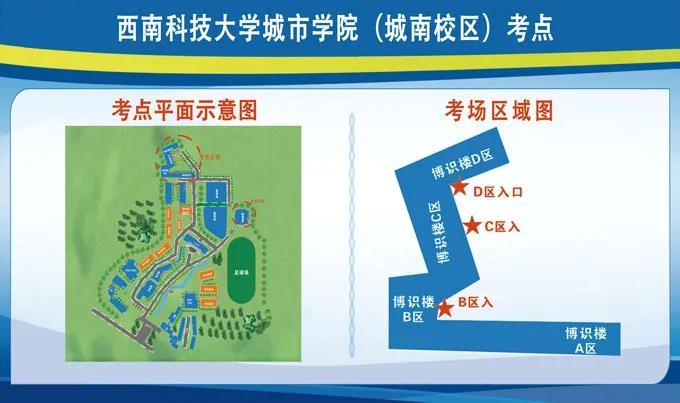1、考点设置是西南科技大学城市学校(城南校区)。详细地址:四川省绵阳市游仙区三星路11号。考场分布在博识楼1.2.3.5.6楼。