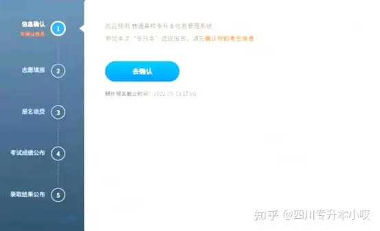 在报名系统里一共有五个流程:信息确认、志愿填报、报名缴费、考试成绩公布、录取结果公布