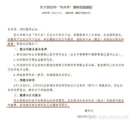 在正式报名前,考试院还会发布《四川省教育考试院关于做好我省2022年普通高等学校专升本考试报名和考试工作的通知》。
