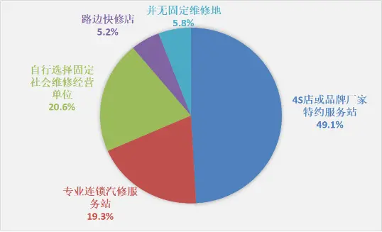 选择无固定维修地和路边快修店仅占5.8%和5.2%。