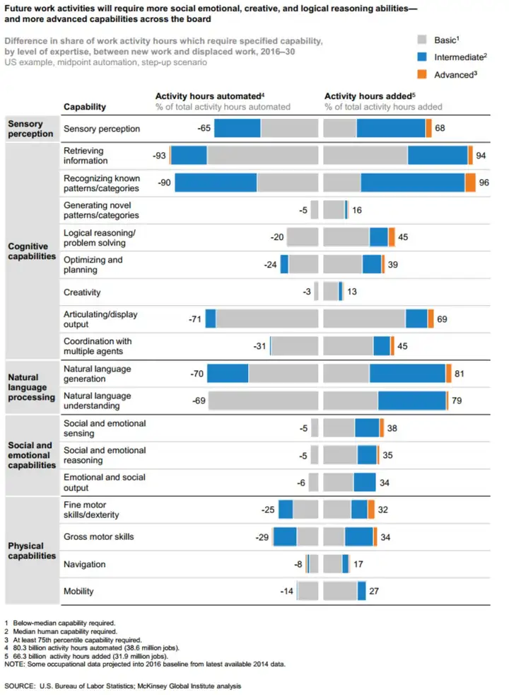 根据麦肯锡全球研究院发表的一份长达160页的报告《失业,就业:自动化时代的劳动力转移》
