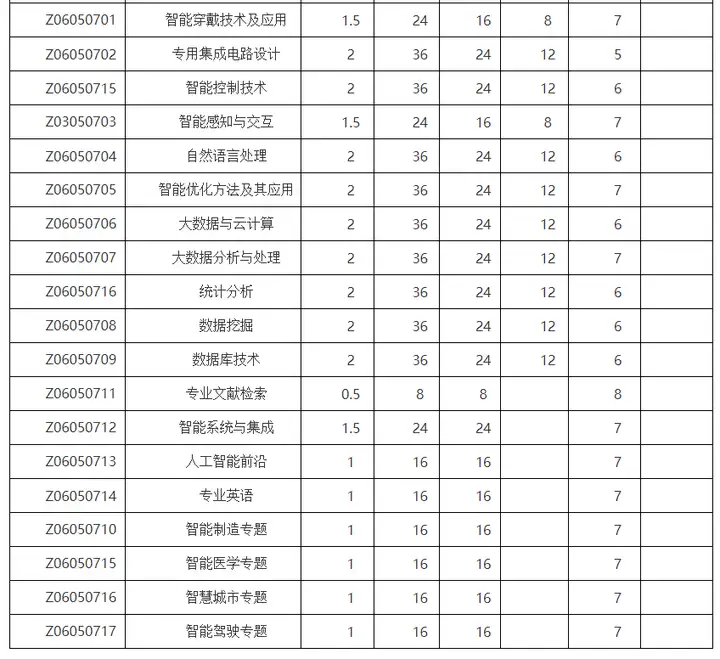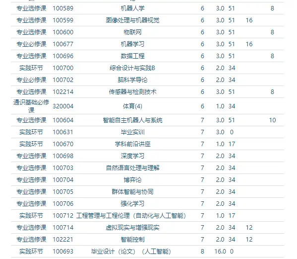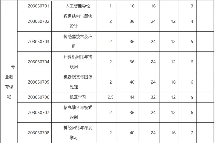 专业特色课程:智能规划,数据挖掘,博弈论,数字图像处理,多媒体技术,自然语言处理,大数据可视分析,类脑计算,三维视觉,智能汽车互联技术,智能语音处理,深度学习,人工智能伦理与法治,虚拟现实,智能船舶,智能交通系统,生物信息学。
