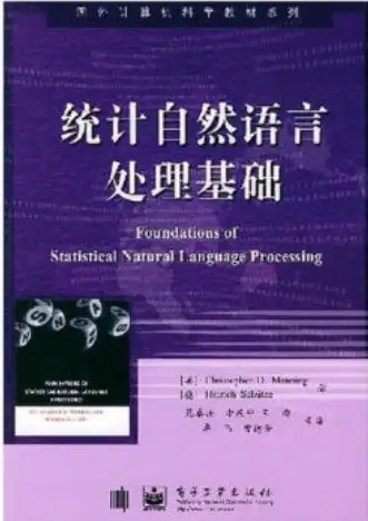 Foundations of Statistical Natural Language Processing,作者是 Christopher D. Manning 和 Hinrich Sch ü tze。本书涵盖的内容十分广泛,包括了构建自然语言处理软件工具将用到的几乎所有理论和算法。全书的论述过程由浅入深,从数学基础到精确的理论算法,从简单的词法分析到复杂的语法分析,适合不同水平的读者群的需求。