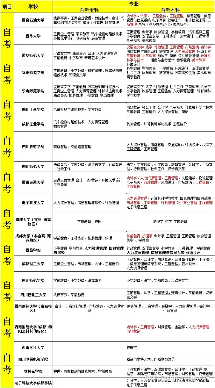 2021年春季四川小自考院校专业已出现在介绍给大家