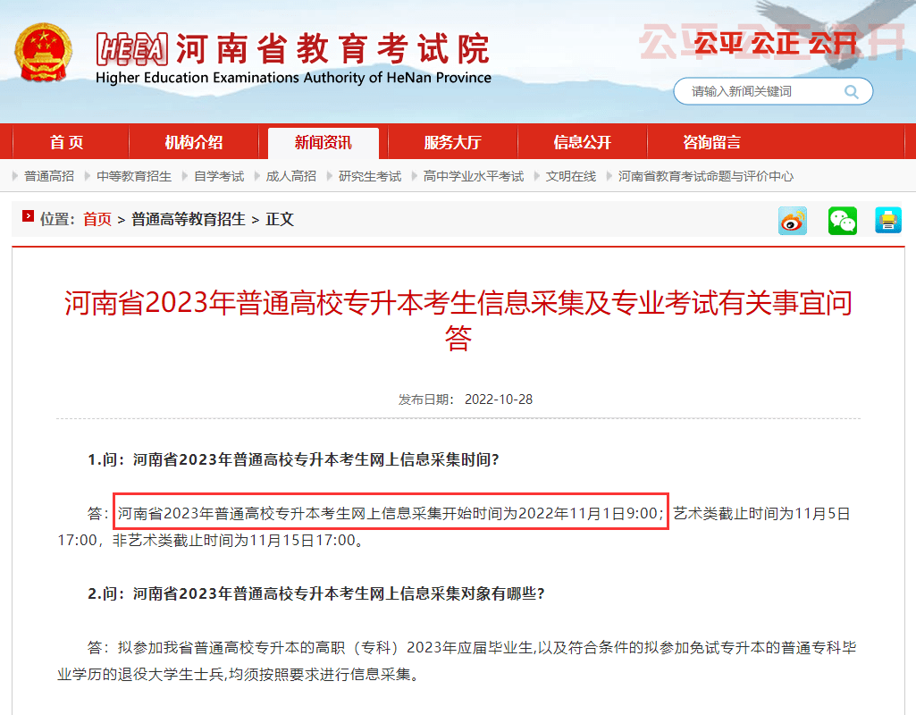 近日,四川职教(ID:sichuanzhijiao)从河南省教育考试院关于“河南省2023年普通高校专升本考生信息采集及专业考试有关事宜问答”中获悉,该省份将从2022年11月1日9:00起,对专升本考生进行网上信息采集。