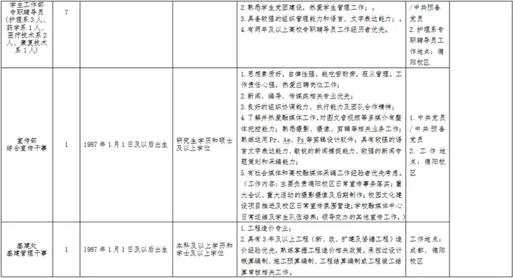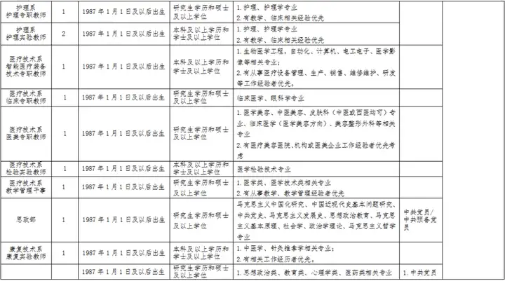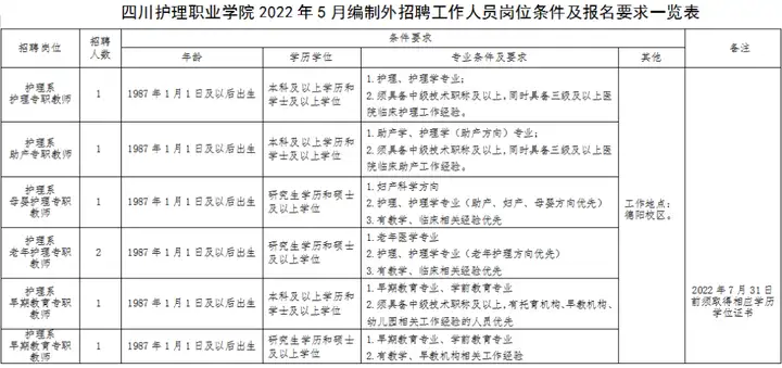 详见《四川护理职业学校2022年5月编制外招聘工作人员岗位条件及报名要求一览表》(附件1)。