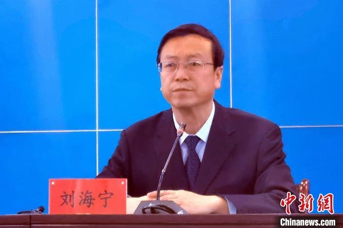 图为青海省退役军人事务厅党组成员、副厅长刘海宁在新闻发布会。 李隽 摄