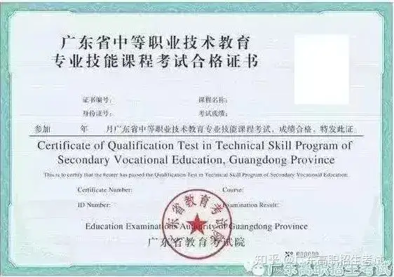 证书包括包含教育部考试中心颁发的全国计算机等级证书、全国英语等级证书及广东省教育考试院组织考试并颁发的“广东省中等职业技术教育专业技能课程考试证书”。