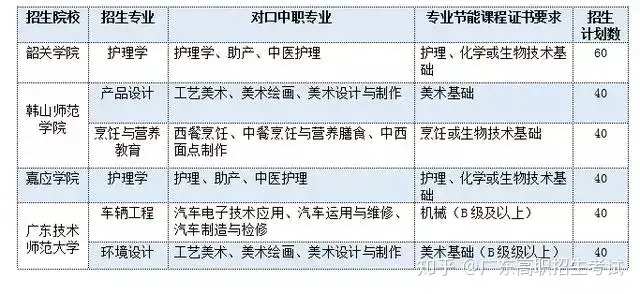自2018年起,广东省的韶关学校、韩山师范学校、嘉应学校、广东技术师范大学 等4所应用型本科院校开始接收中职生。