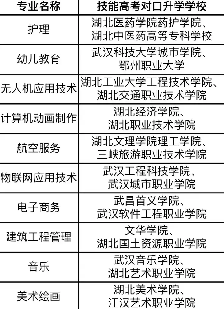 其他学校我不太清楚,像武汉三新职业技术学校的幼儿教育对口直升的学校有武汉科技大学城市学校、鄂州职业大学