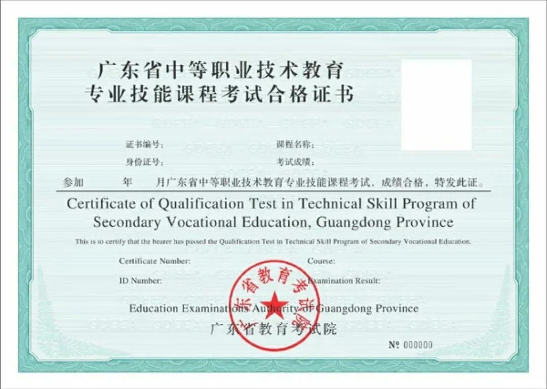 (1)广东省教育考试组织考核颁布的14种专业技能证书。