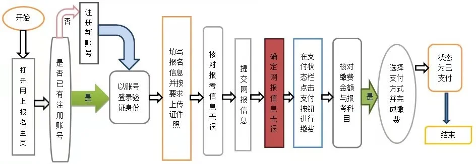 注意:考生网上预报名后,必须在规定的时间内到所在市招生办公室(考试中心)指定的报名点办理报名信息确认及缴费手续。