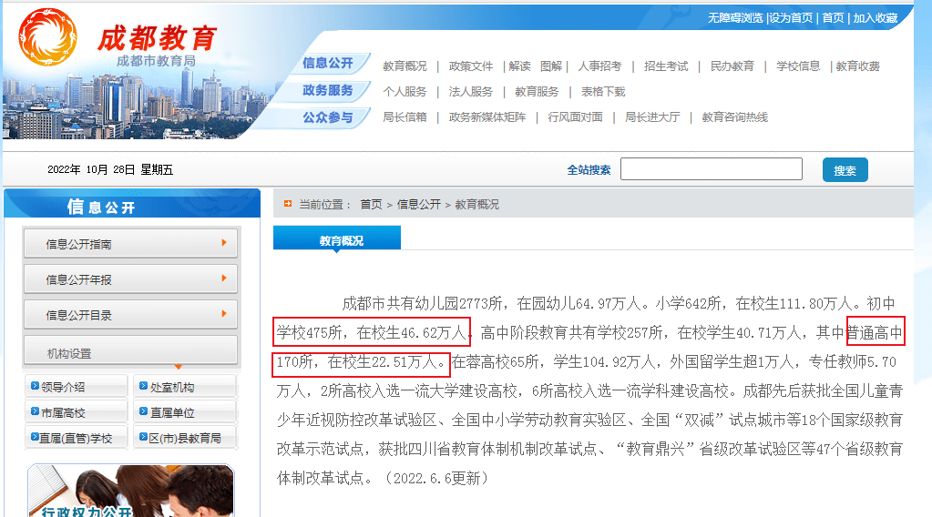 在今年6月份成都教育网上公布的消息可以看出,成都市的初中学校有475所,在校生是46.62万人,而普高学校则只有170所,目前在校的人数是在22.51万人。这一对比就能看出,五五分流不只是是政策,实际这么高的比例,也的确需要。