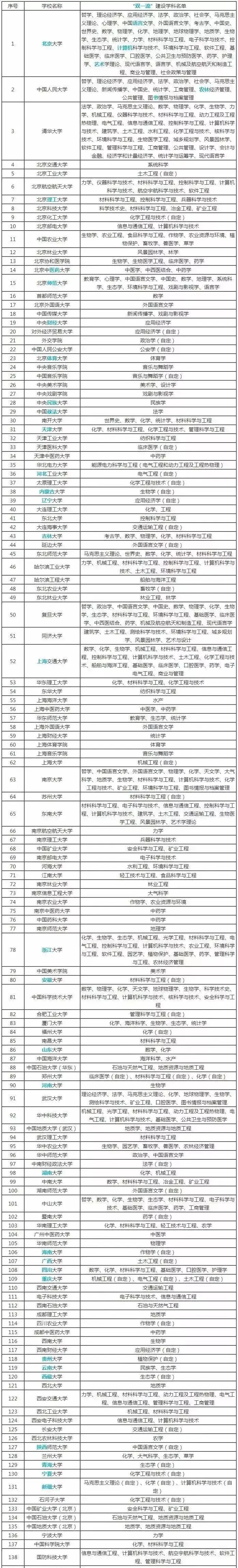 2世界一流学科建设高校当然,42所世界一流大学都是世界一流学科建设高校,所以严格上说世界一流学科建设高校名单有140所。