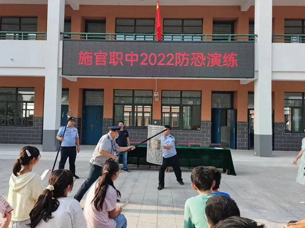 为了提升学校应对暴力事件能力,聂民警等人为师生进行演练示范,用实际行动筑牢师生安全“防护墙”。聂民警非常细致地给师生特别是学校安保人员演示了防暴盾牌、钢叉、警棍的使用。熟练的动作博得在场师生阵阵叫好;生动的示范引得场下学生跃跃欲试。聂民警热情邀请了七年级的同学上台示范。整个演练示范活动圆满完成。