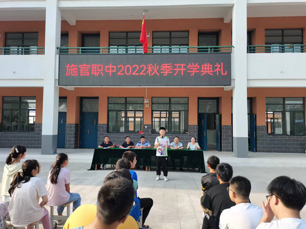 学校分管教学李庆双副校长作致辞,为新同学就去年学校在教学管理中取得的成绩做了简要介绍,同时也希望新同学能尽快适应初中学习生活,尽快融入施官职中这个大家庭。接着新生代表和老生代表分别发言,表达了全体同学新学期对未来的美好向往。